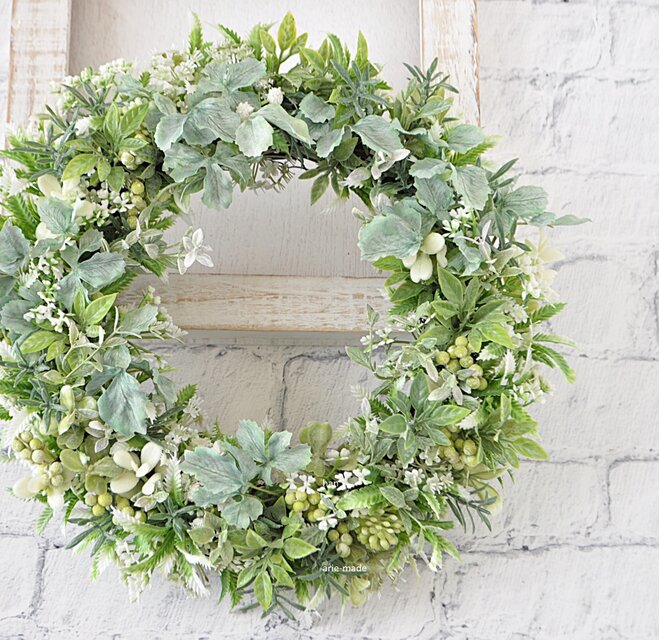 green grass 緑葉のリース:葉 実 グリーン 白
