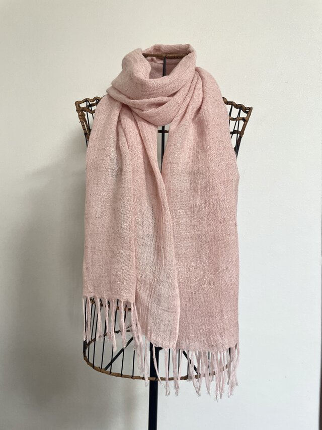 麻、レーヨン混の生地を使った肌ざわりのいいストールです。