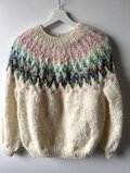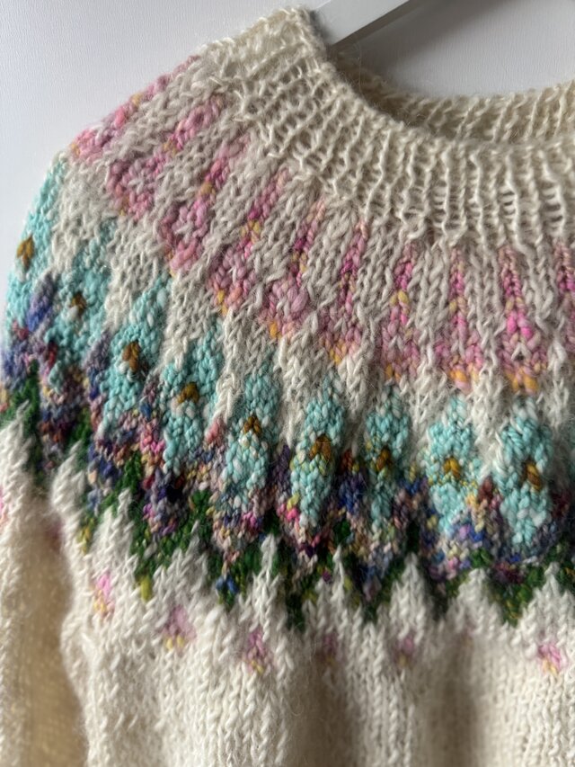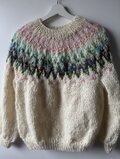 優しい色合いの手紡ぎ毛糸で編みました、ゆったりめのロピセーターです。