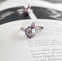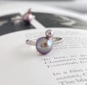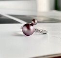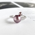 アボカドパープル 天然淡水パール 2粒並べた モダンリング 2本から選べます