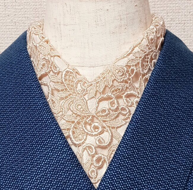 シャンパンベージュのリッチなケミカルレースの半襟です。