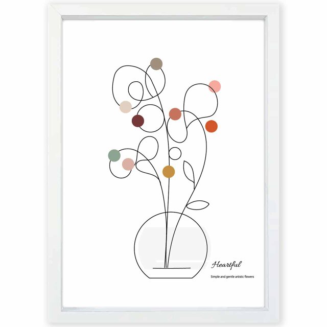 シンプルでやさしいアートな花 ハートフルインテリアポスター。