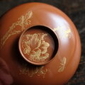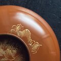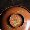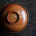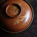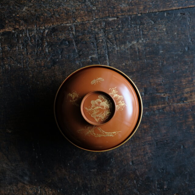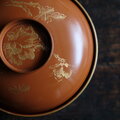 花と蝶々◆ブラウンで素敵。古輪島塗 花蝶文漆芸沈金蓋付椀 漆器 骨董・antiques 明治〜大正期