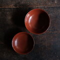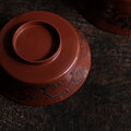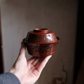ブラウンに唐草文様◆時代物 漆芸蓋付椀 古漆器 骨董・antiques 大正〜昭和初期