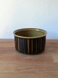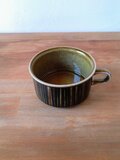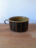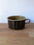 グンヴァル・リンリン(Gunvor Olin-Grönqvist)が手がけたこの装飾は、深みのあるブラウンやオリーブグリーンの釉薬と調和し、ハンドペイントならではの豊かな表情を生み出しています。
