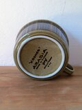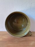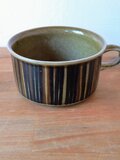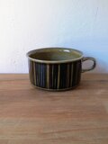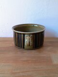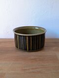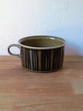 グンヴァル・リンリン(Gunvor Olin-Grönqvist)が手がけたこの装飾は、深みのあるブラウンやオリーブグリーンの釉薬と調和し、ハンドペイントならではの豊かな表情を生み出しています。