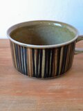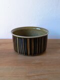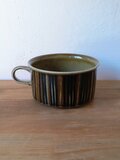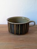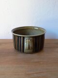 グンヴァル・リンリン(Gunvor Olin-Grönqvist)が手がけたこの装飾は、深みのあるブラウンやオリーブグリーンの釉薬と調和し、ハンドペイントならではの豊かな表情を生み出しています。