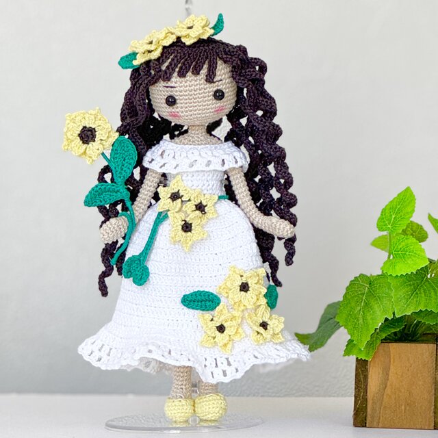太陽の下で可愛い黄色で元気を与えるひまわりのお人形さんです。٩(๑❛ᴗ❛๑)۶☆