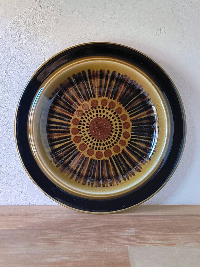 フィンランドのアラビア(ARABIA)社において、ウラ・プロコッペ(Ulla Procopé)がフォルムを設計し、グンヴァル・リンリン(Gunvor Olin-Grönqvist)が装飾を手がけた「Kosmos(コスモス)」シリーズの直径20cmプレートです。