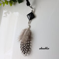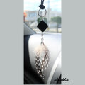 ブラックオニキスとフェザーのルームミラーハンギング|天然石・車内インテリア・シンプルデザイン