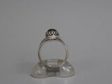 リングのサイズは14号、重さは10g、最大幅は20mm、手のひら側の幅は5mm、金属部分は純銀です。
