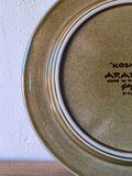 オリーブグリーンやブラウンの釉薬が重なり合うことで、ハンドペイントならではの色の濃淡や奥行きのある表情が生まれています。