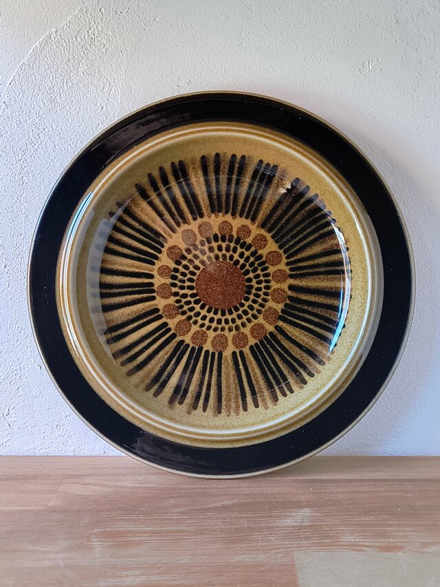 フィンランドのアラビア(ARABIA)社において、ウラ・プロコッペ(Ulla Procopé)がフォルムを設計し、グンヴァル・リンリン(Gunvor Olin-Grönqvist)が装飾を手がけた「Kosmos(コスモス)」シリーズの直径20cmプレートです。