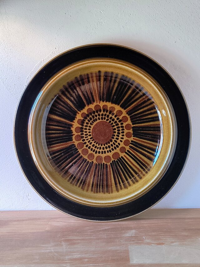 フィンランドのアラビア(ARABIA)社において、ウラ・プロコッペ(Ulla Procopé)がフォルムを設計し、グンヴァル・リンリン(Gunvor Olin-Grönqvist)が装飾を手がけた「Kosmos(コスモス)」シリーズの直径25.5cmプレートです。