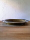 オリーブグリーンやブラウンの釉薬が重なり合うことで、ハンドペイントならではの色の濃淡や奥行きのある表情が生まれています。