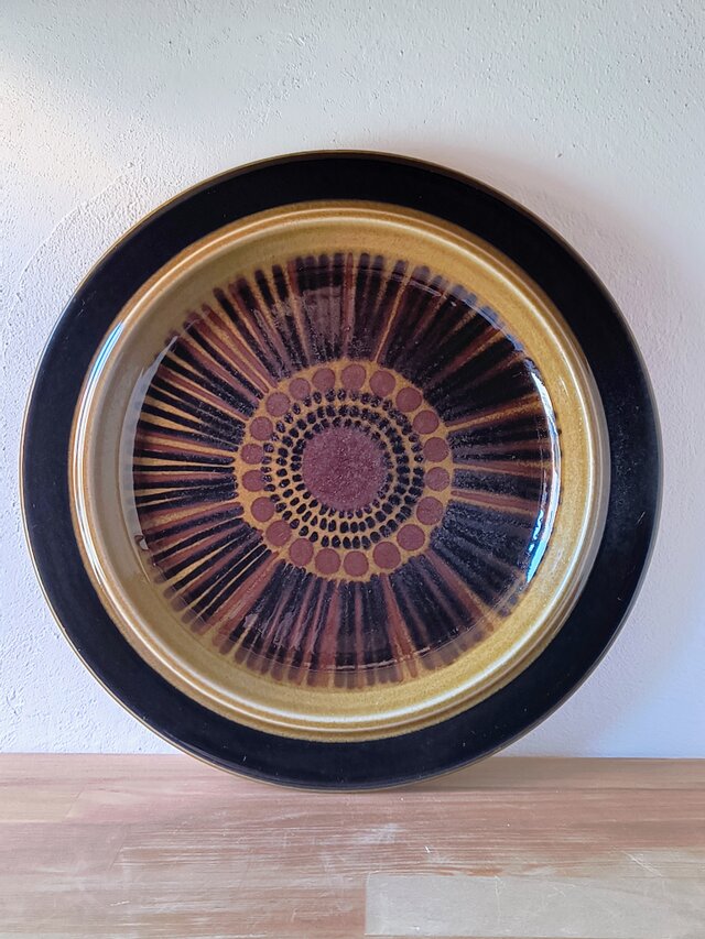 フィンランドのアラビア(ARABIA)社において、ウラ・プロコッペ(Ulla Procopé)がフォルムを設計し、グンヴァル・リンリン(Gunvor Olin-Grönqvist)が装飾を手がけた「Kosmos(コスモス)」シリーズの直径25.5cmプレートです。