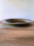 オリーブグリーンやブラウンの釉薬が重なり合うことで、ハンドペイントならではの色の濃淡や奥行きのある表情が生まれています。