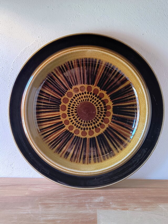 フィンランドのアラビア(ARABIA)社において、ウラ・プロコッペ(Ulla Procopé)がフォルムを設計し、グンヴァル・リンリン(Gunvor Olin-Grönqvist)が装飾を手がけた「Kosmos(コスモス)」シリーズの直径25.5cmプレートです。