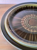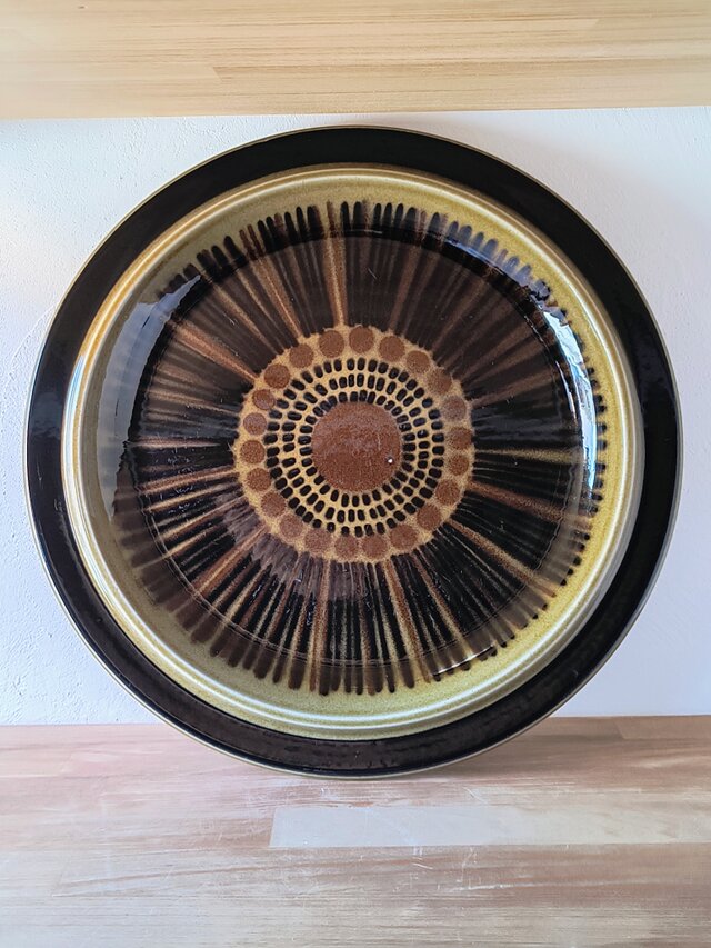 フィンランドのアラビア(ARABIA)社において、ウラ・プロコッペ(Ulla Procopé)がフォルムを設計し、グンヴァル・リンリン(Gunvor Olin-Grönqvist)が装飾を手がけた「Kosmos(コスモス)」シリーズの直径33.5cm大皿サービングプレートです。