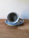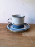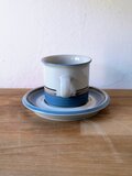 フィンランドのアラビア(ARABIA)社にて、ウラ・プロコッペ(Ulla Procopé)がフォルムを設計し、インケリ・レイヴォ(Inkeri Leivo)がデコレーションを手がけた「Uhtua(ウートゥア)」シリーズのコーヒーカップ&ソーサーです。