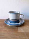 フィンランドのアラビア(ARABIA)社にて、ウラ・プロコッペ(Ulla Procopé)がフォルムを設計し、インケリ・レイヴォ(Inkeri Leivo)がデコレーションを手がけた「Uhtua(ウートゥア)」シリーズのコーヒーカップ&ソーサーです。