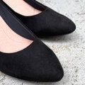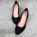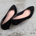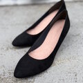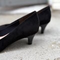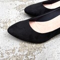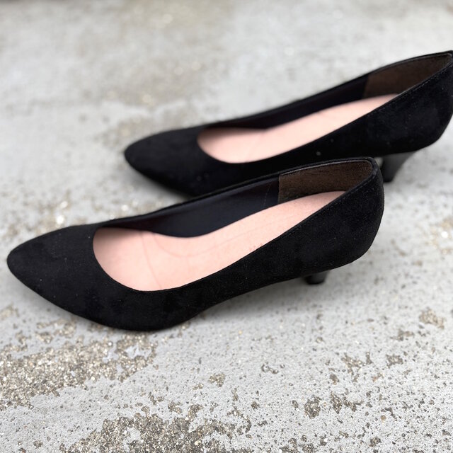 マットで深みのあるブラックはスエード調と落ち着きのあるブラックのパンプス。