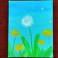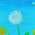 綿毛に成長したタンポポのお見送りを家族でしています