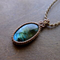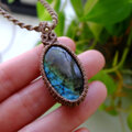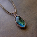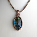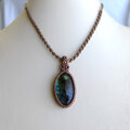 ラブラドライト(マダガスカル産)マクラメ編みペンダントネックレス 【特別価格】男女兼用可アクセサリー プレゼントギフト 3833