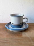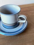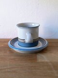フィンランドのアラビア(ARABIA)社にて、ウラ・プロコッペ(Ulla Procopé)がフォルムを設計し、インケリ・レイヴォ(Inkeri Leivo)がデコレーションを手がけた「Uhtua(ウートゥア)」シリーズのコーヒーカップ&ソーサーです。
