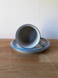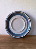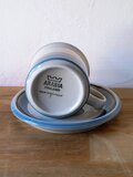 1982年から1999年まで製造された本シリーズは、水辺を連想させる静謐なデザインが特徴です。落ち着いたベージュの地色に、淡いブルー、グレー、そしてブラックの細いラインが水平に描かれており、北欧の穏やかな自然風景を象徴するようなミニマルで洗練された印象を与えます。