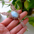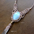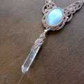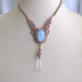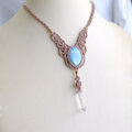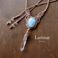 ラリマー(ドミニカ共和国産)・水晶ポイント (ブラジル産)マクラメ編みペンダントネックレス 誕生日プレゼントギフト 3832