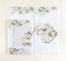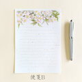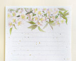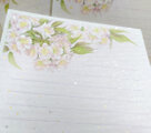 地色は桜の周りは淡いピンク、筆記欄は白、2種類の便箋が4枚ずつ入っています。