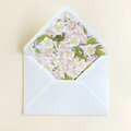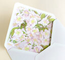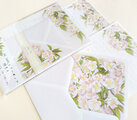 封筒は淡いピンク地、宛名面にもフタにも桜が咲いています。
