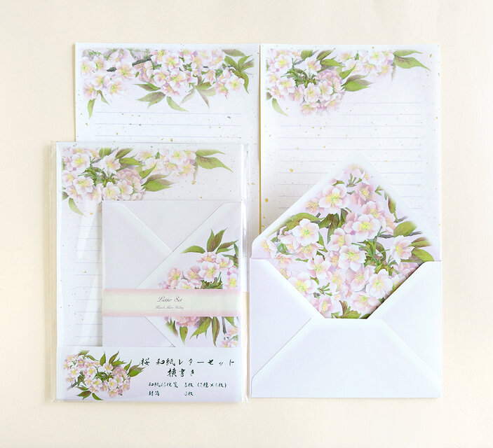 桜を描いたオリジナルの日本画をもとにA5サイズの横書き和紙レターセットを作りました。