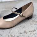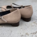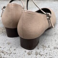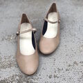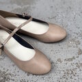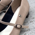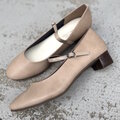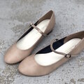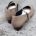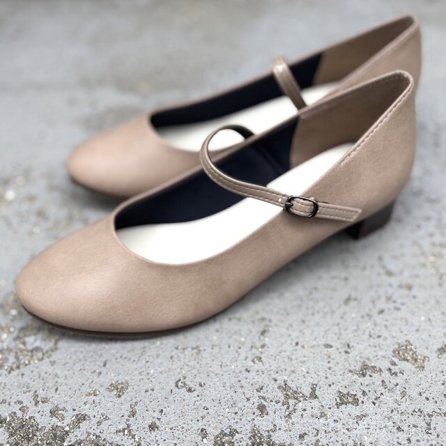 マットのベージュが可愛いプレーンなストラップパンプス。