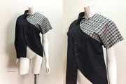 【1点もの・デザイン画付き】綿ジャガード&ケミカルレース変則アシメトリーブラウス(KOJI TOYODA)