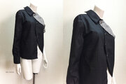 素敵なブラウスが届きました。首元の黒いトリミングがとても効いていると思います。デザイン画のように黒いロングスカートと合わせて、足元はパンプスで気合を入れて。動きやすいのもいいですね。ありがとうございました。