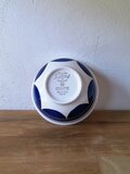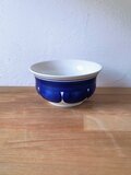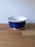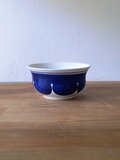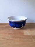 コレットは、1970年代から1980年代にかけて製造されました。この時代は、北欧デザインがより軽やかでモダンな表現へと移行していった時期であり、コレットシリーズもその空気感を色濃く反映しています。清潔感のある白磁をベースに、ネイビーブルーのラインが同心円状に描かれ、その間に淡いブルーの帯が配された、非常に洗練されたカラーリングが特徴です。