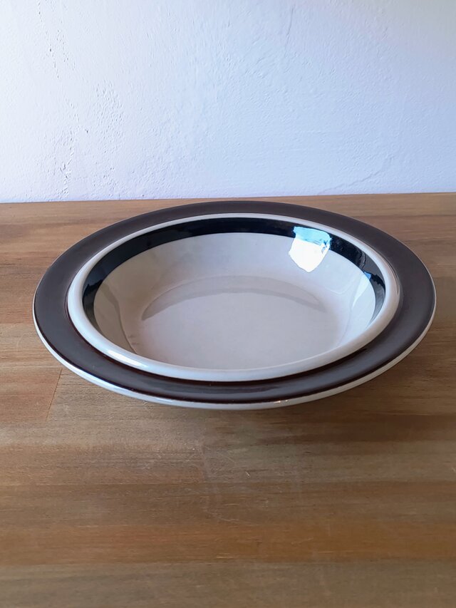 フィンランドのアラビア(ARABIA)社を代表するデザイナー、ウラ・プロコッペ(Ulla Procopé)がフォルムを設計し、ライヤ・ウオシッキネン(Raija Uosikkinen)が装飾を手がけた「Ruija(ルイージャ)」シリーズのスーププレートです。