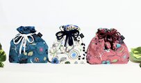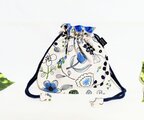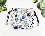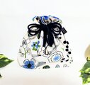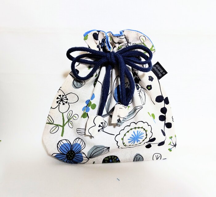 北欧風フラワーガーデン柄、ナチュラル生成り色、綿リネン地の巾着袋です。