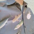 綿レーヨン生地に若冲魚群図が描かれた粋なシャツ