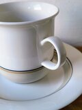フィンランドのアラビア(ARABIA)社を代表するデザイナー、インケリ・レイヴォ(Inkeri Leivo)がフォルムと装飾を手がけた「Seita Arctica(セイタ・アークティカ)」シリーズのコーヒーカップ&ソーサーです。