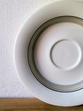 装飾は、滑らかな白磁の上に、細いラインと小さなドットが繊細なタッチで描かれています。これは雪原に刻まれた足跡や、北欧の冬の夜空に輝く星々を連想させ、無駄を削ぎ落としたミニマルなデザインの中に、インケリ・レイヴォらしい清らかな感性が息づいています。