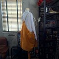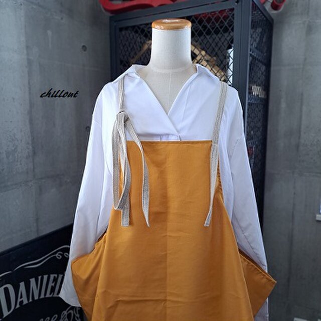 マスタード×ナチュラルリネンのエプロンドレスが出来上がりました。