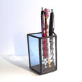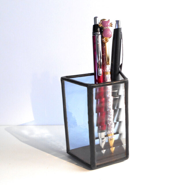 背面青のステンドグラス&前面が透明の波板硝子のペン立てです。