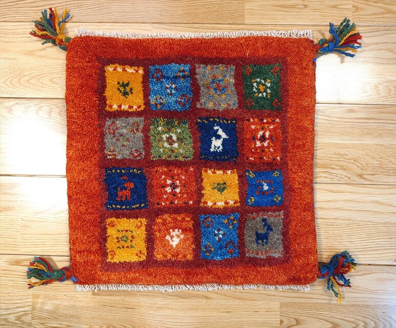 近場で売っているギャッベのマットよりもずっと 厚みがあり、座っていて気持ちいいです