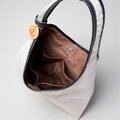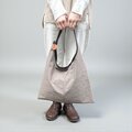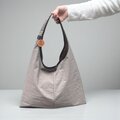 三角形のシンプルなホーボーバッグ。幅広の肩紐に、大きく開けた肩口はスマートに肩にかけることができます。