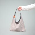 特殊な織りかたにより、昆布のような「ナチュラルでドライな風合い」で、ナイロンなのに温かみのある手触りが表現されています。パリッとした質感ですが、荷物を入れると柔らかな風合いになります。