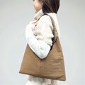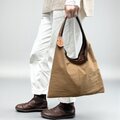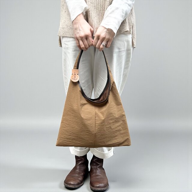 特殊な織りかたにより、昆布のような「ナチュラルでドライな風合い」で、ナイロンなのに温かみのある手触りが表現されています。パリッとした質感ですが、荷物を入れると柔らかな風合いになります。