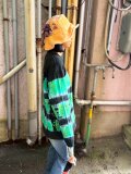 タイダイ 長袖Tシャツ Lサイズ ブラック×グリーン ボーダー。